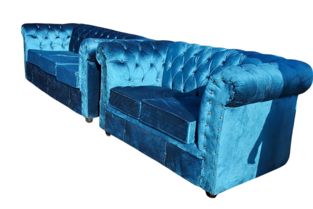 5 Seater Blue Chester Sofa in Kenya – Classic Elegance Meets Modern Comfort